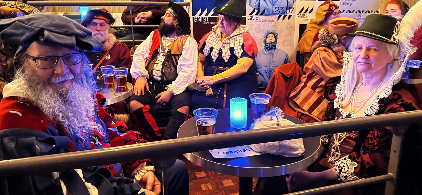 Allerede ved indgangen blev det tydeligt, at der ikke var en helt almindelig aften i vente. Frivillige i middelalderdragter tog imod publikum, og i baren blev der skænket mjød. Musikhuzet var forvandlet til et tidløst spillested, hvor moderne elektroniske rytmer og århundredgamle nordiske ballader mødtes. Rummet summede af forventning og latter, da gæsterne tog plads i salen.