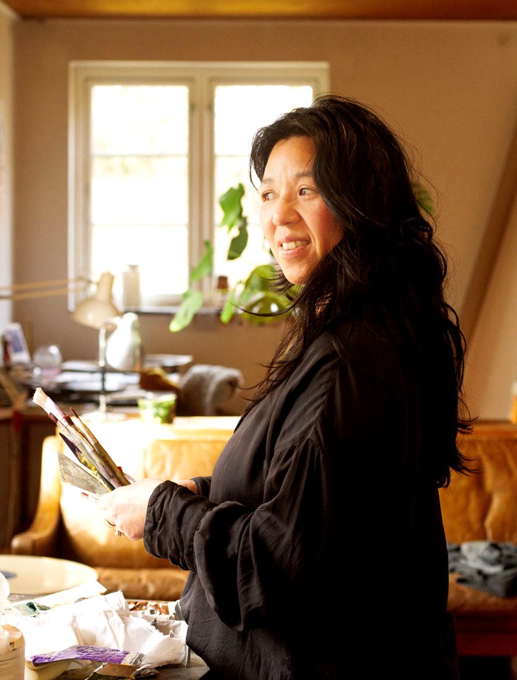 Siden har hun haft en lang karriere som billedkunstner med udstillinger på et hav af museer og kunsthaller herhjemme og i udlandet. Og hun bliver stadig aldrig træt af at starte forfra med det tomme lærred foran sig. Men hvad er det ved at male, der er så vidunderligt?