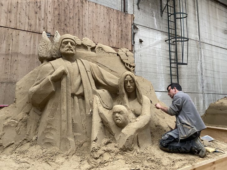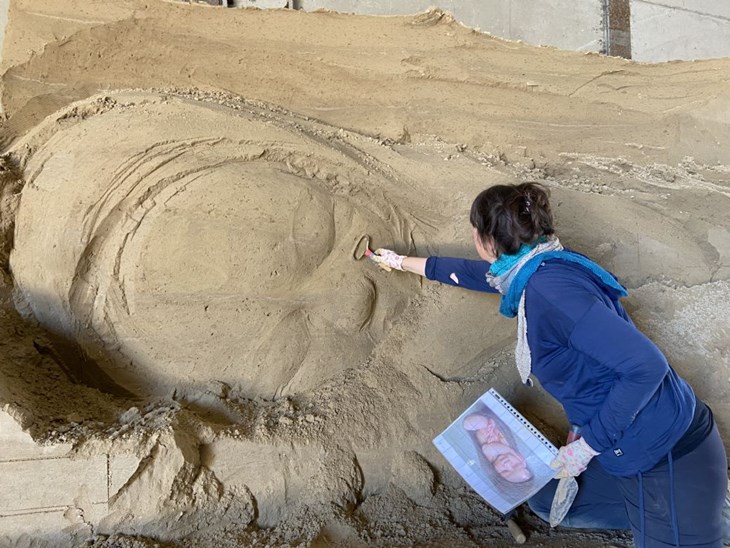 Det er nogle af verdens dygtigste kunstnere der er inviteret til Nexø denne sommer for at lave kunstværker til Nexø Sandskulpturpark. Foto: Anders Liljeroth