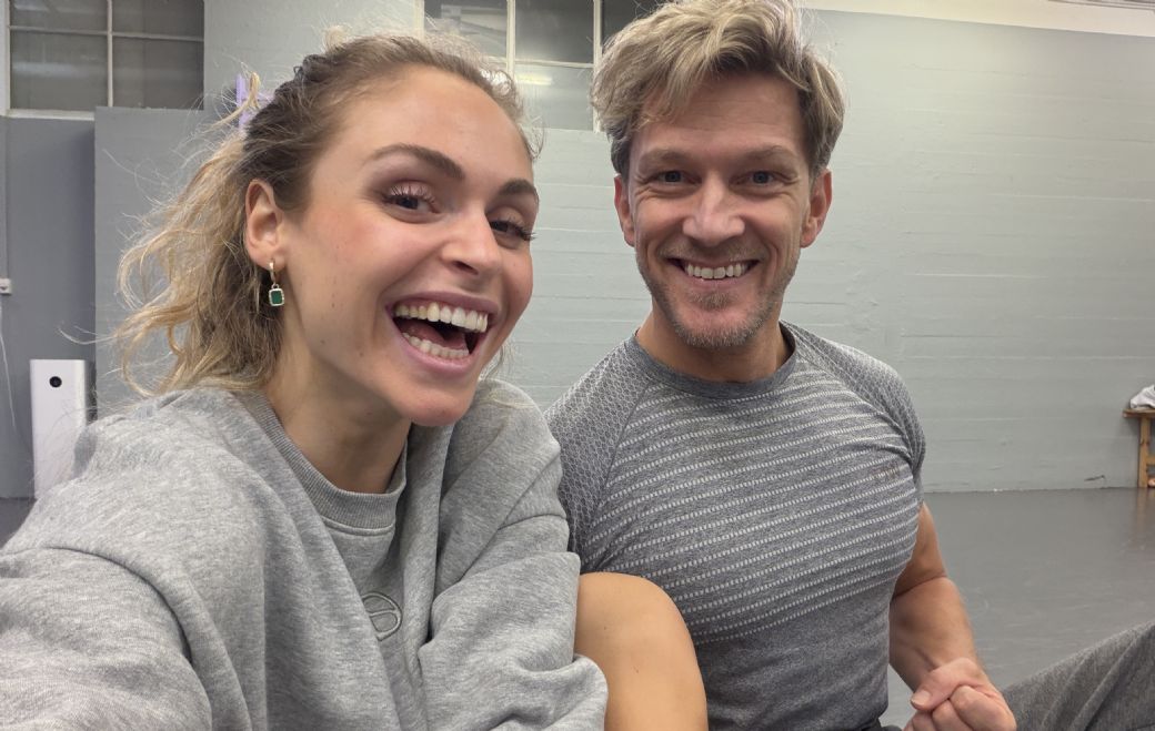 Jasmin og Michael holder her torsdag en kort pause i træningen ude på tv-produktionsselskabet Mastiff i Nordvest, København, hvor det er strengt forbudt at have gæster på besøg. Privat foto
