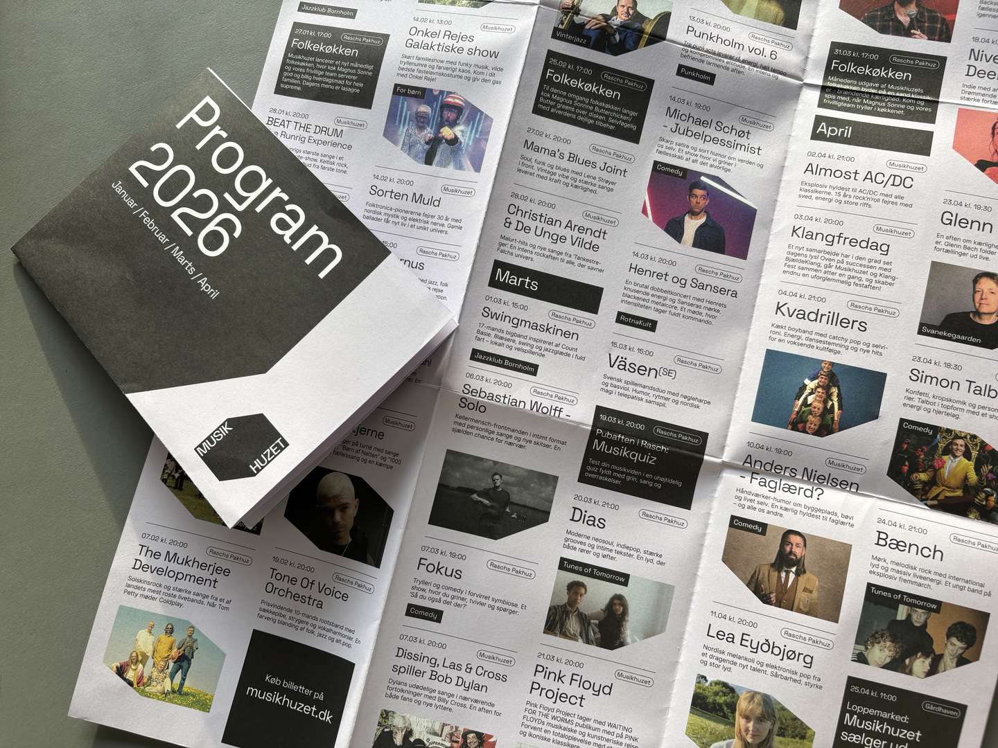 Mange ved uden tvivl, hvordan Musikhuzets program ser ud, altså det på papir, som med undtagelse af farveforskelle har haft det samme udseende i mere end 20 år. Men ikke længere. Spillestedet på Store Torv har sendt et forårsprogram på gaden, som både ser anderledes ud og løfter sløret for nye initiativer og arrangementer.