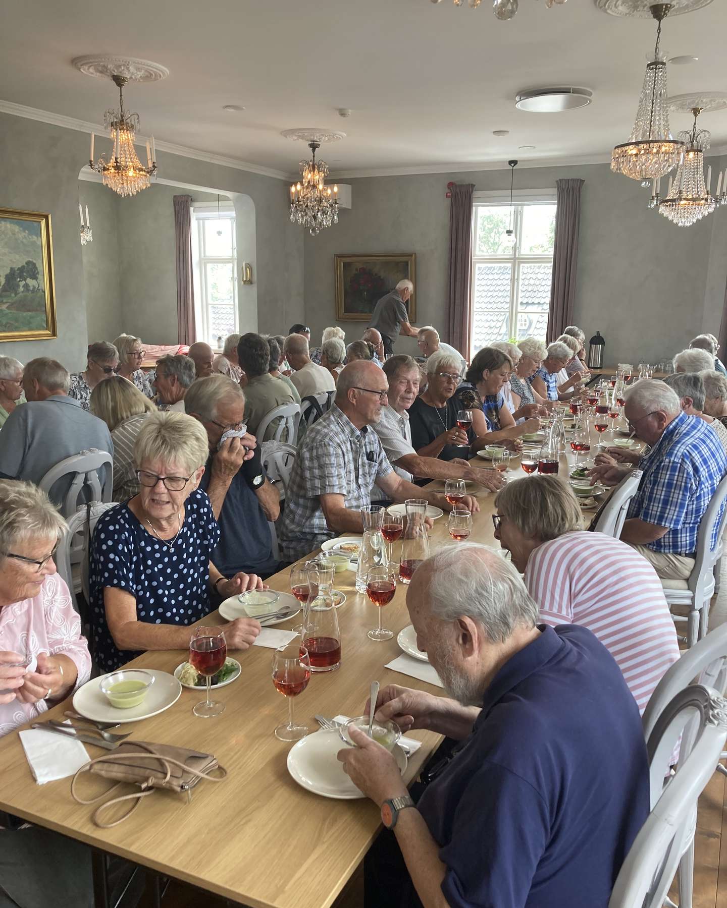 Frokost på Dalby Gästis med hakkebøf, kartofler og ikke sauce, men sovs. Foto: Nyker Pensionistforening