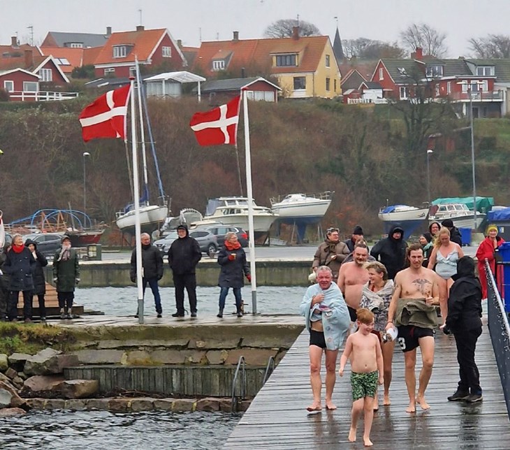 Medlemmerne i den lokale badeklub i Hasle fejrede tirsdag årets sidste dag med en tur i havnebadet. Det fortæller Tom Vesth fra Hasle og Omegns Byting på facebook.