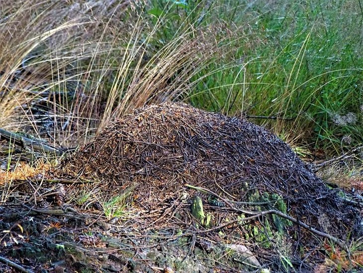 Ved første øjekast ser vinterens myretue lukket ud. Der er dog to små åbninger som sørger for ventilation for et samfund med en halv million myrer