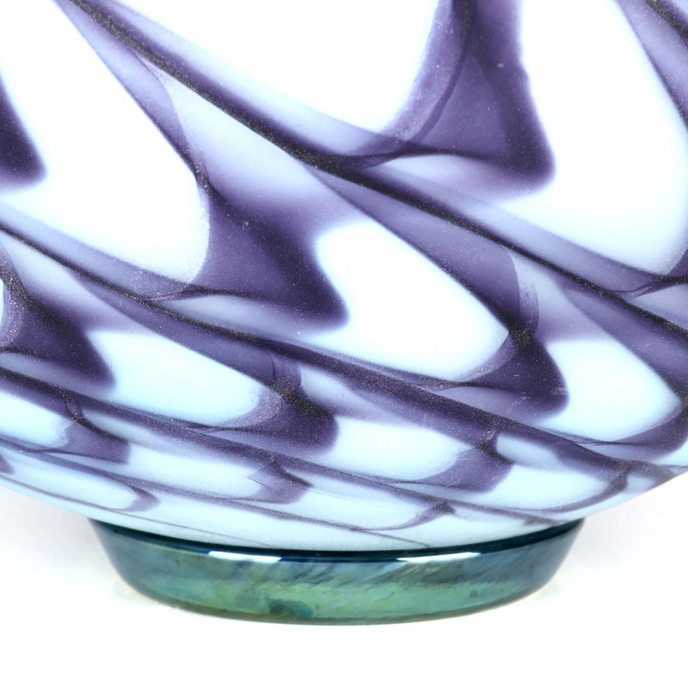 Dette er nederste del af en karakteristisk glasskål udført af Maibritt Jönsson og Pete Hunner hos Baltic Sea Glass i 2000. Det 12 centimeter høje stykke kunsthåndværk er til salg hos Palsgaard Kunstauktioner og er vurderet til beskedne 800 kroner.
