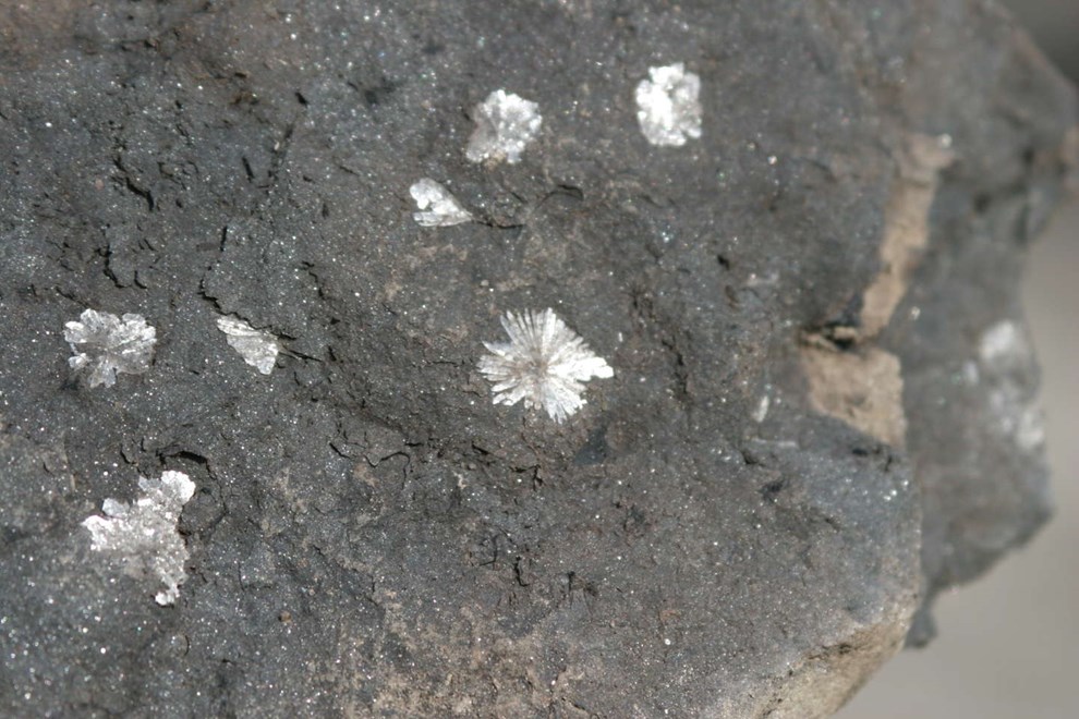 Her lugter af svovl. Det kan ligne et månelandskab. Svovllugten skyldes kullenes indhold af mineralet pyrit. Prøv at find nogle små stykker kul og flæk dem. Der kan være små flade stykker af svovllugtende guld, kaldt narreguld, det er mineralet pyrit.