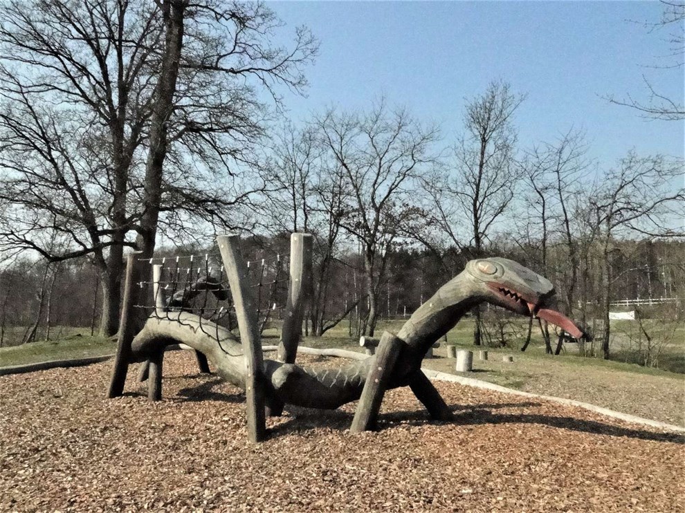 Ved naturlegepladsen i Hareløkkerne ses en væmmelig drage