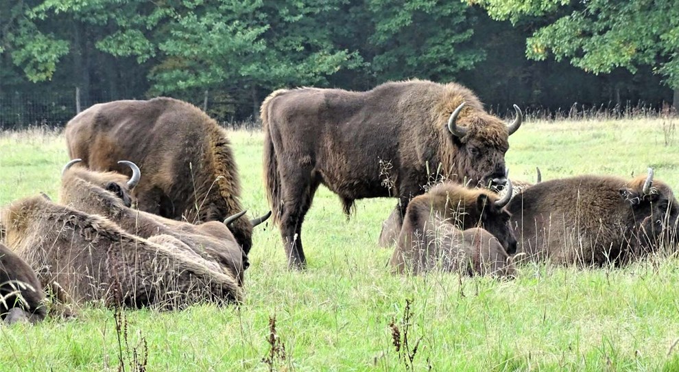 I 2012 kom der syv bisonokser hertil fra et polsk naturreservat for skabe en større biodiversitet. Tyrene har en højde på to meter og vejer et tons. Hunnerne noget mindre. Bisonokserne spiser hver dag om sommeren 40 kg græs og urter, bark, grene og knopper om vinteren.