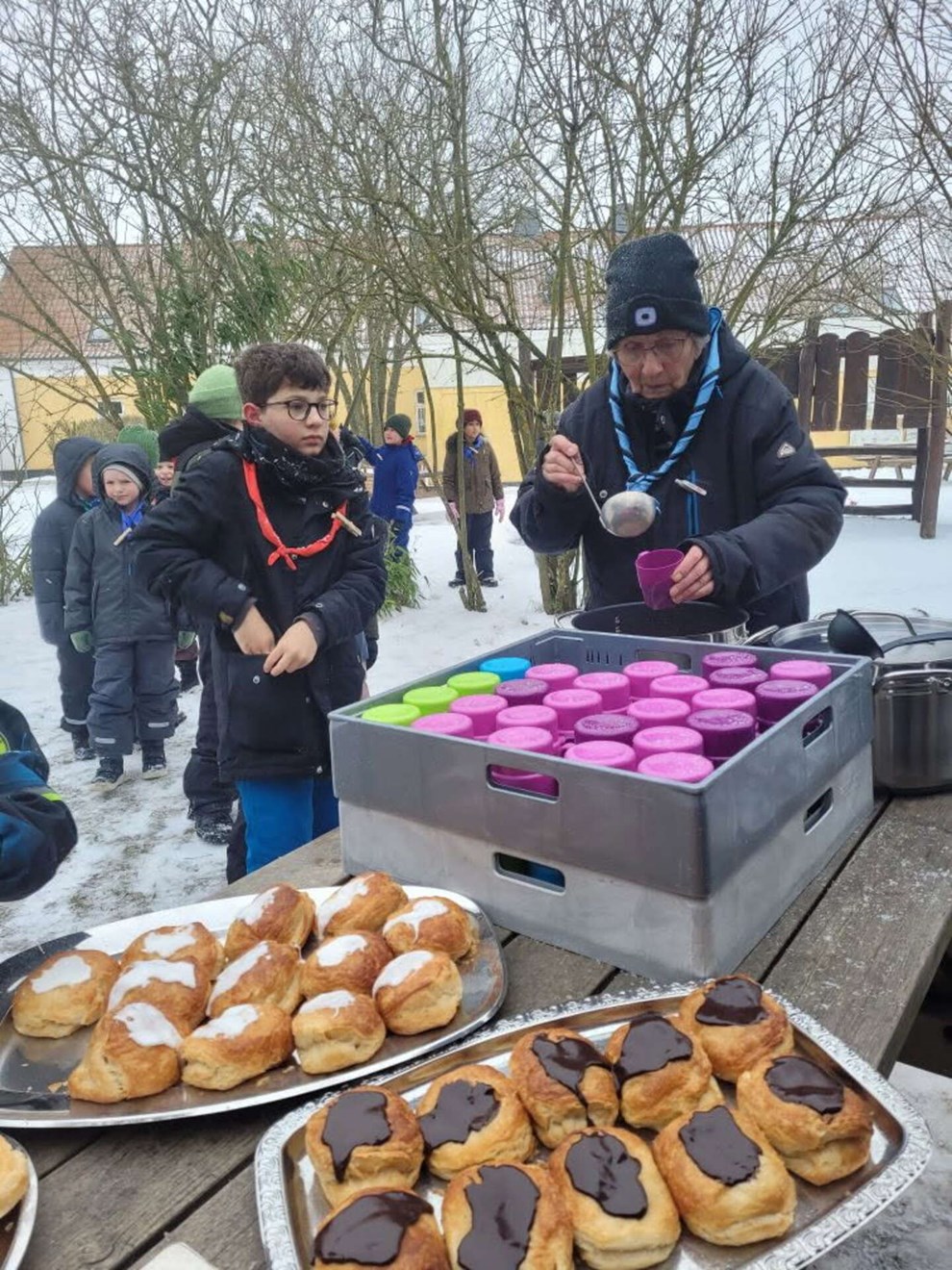 Til den søde tand var der også varm kakao og hjemmebagte fastelavnsboller, der kunne nydes ved et bål i bålhytten hos Børnehuset i Klemensker.