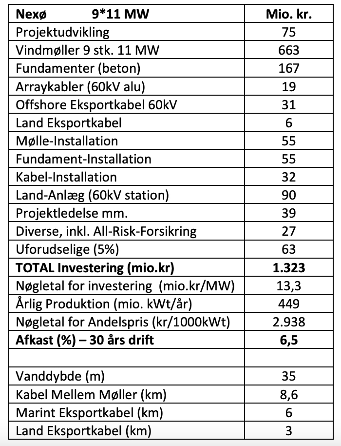 I de tekniske bilag, som Bornholms Havvind har delt på den opdaterede hjemmeside, forklares det, at en forhøjet byggeudgift på 30 procent kan tjenes hjem, ”hvis elmarkedsprisen i tre år er dobbelt så høj som de antagne priser eller i seks år er 50 procent højere end de antagne priser. De seneste to år har prisen været dobbelt så høj som antaget, og det ser ud til at vare adskillige år endnu,” skriver Bornholms Havvind.