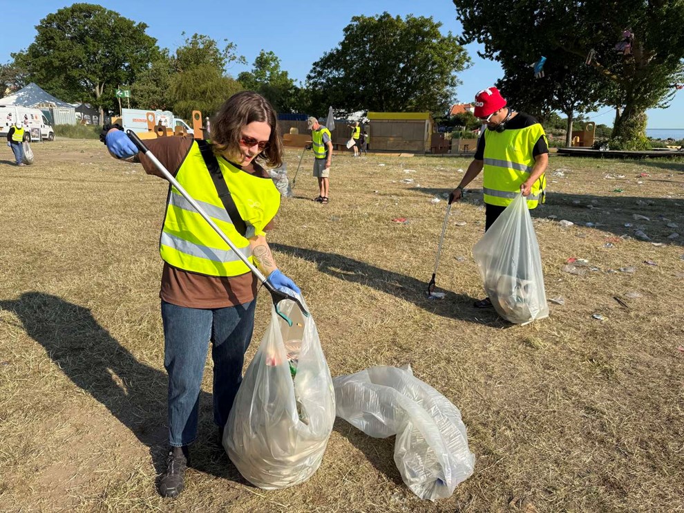 – Det er selvfølgelig sjovest, hvis der ikke er folk, der skal gå og samle affald op i tre timer her til morgen, som Folkemødets frivillige gør. Men det er fedt, at der er folk, som gider det. Der er nogen, der bliver betalt for at sortere affald, og så er der nogen, der møder op frivilligt klokken syv. Det er fantastisk, siger hun.