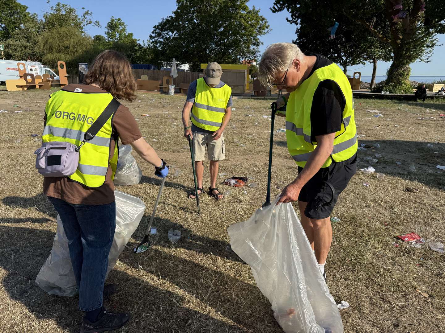 Det samlede skraldehold består af 20 frivillige, der skal ud at rydde pladsen for skrald, inden Folkemødets gæster ankommer.