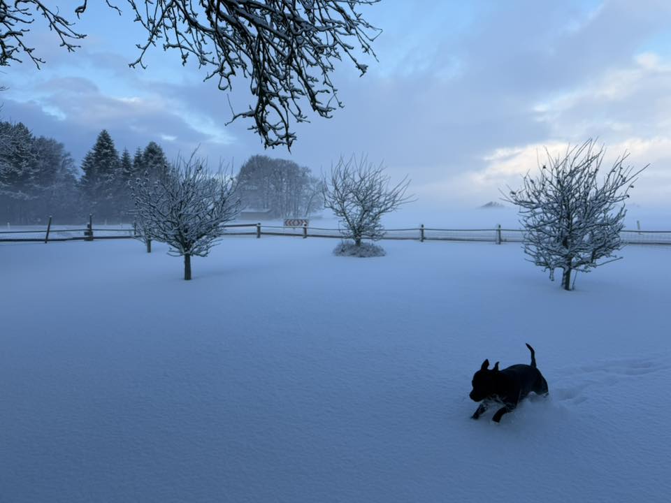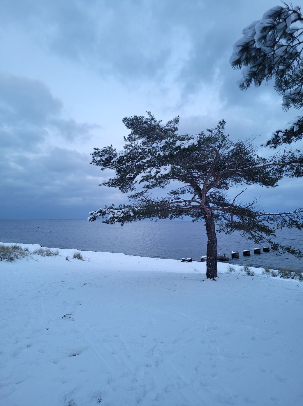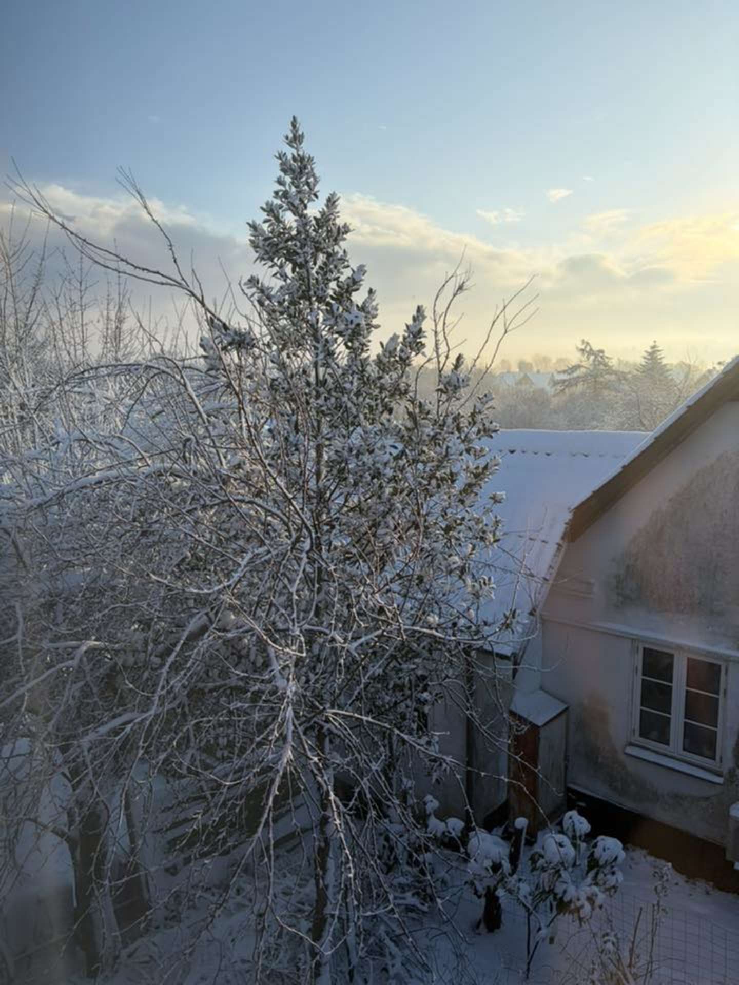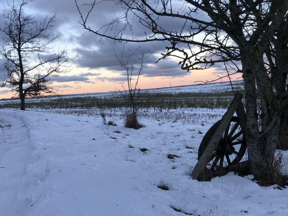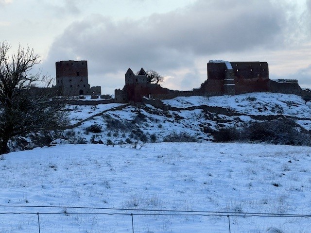 Aruna Vybernaitiene har været en tur i Klemensker, hvor solen kæmper forgæves mod sneen.