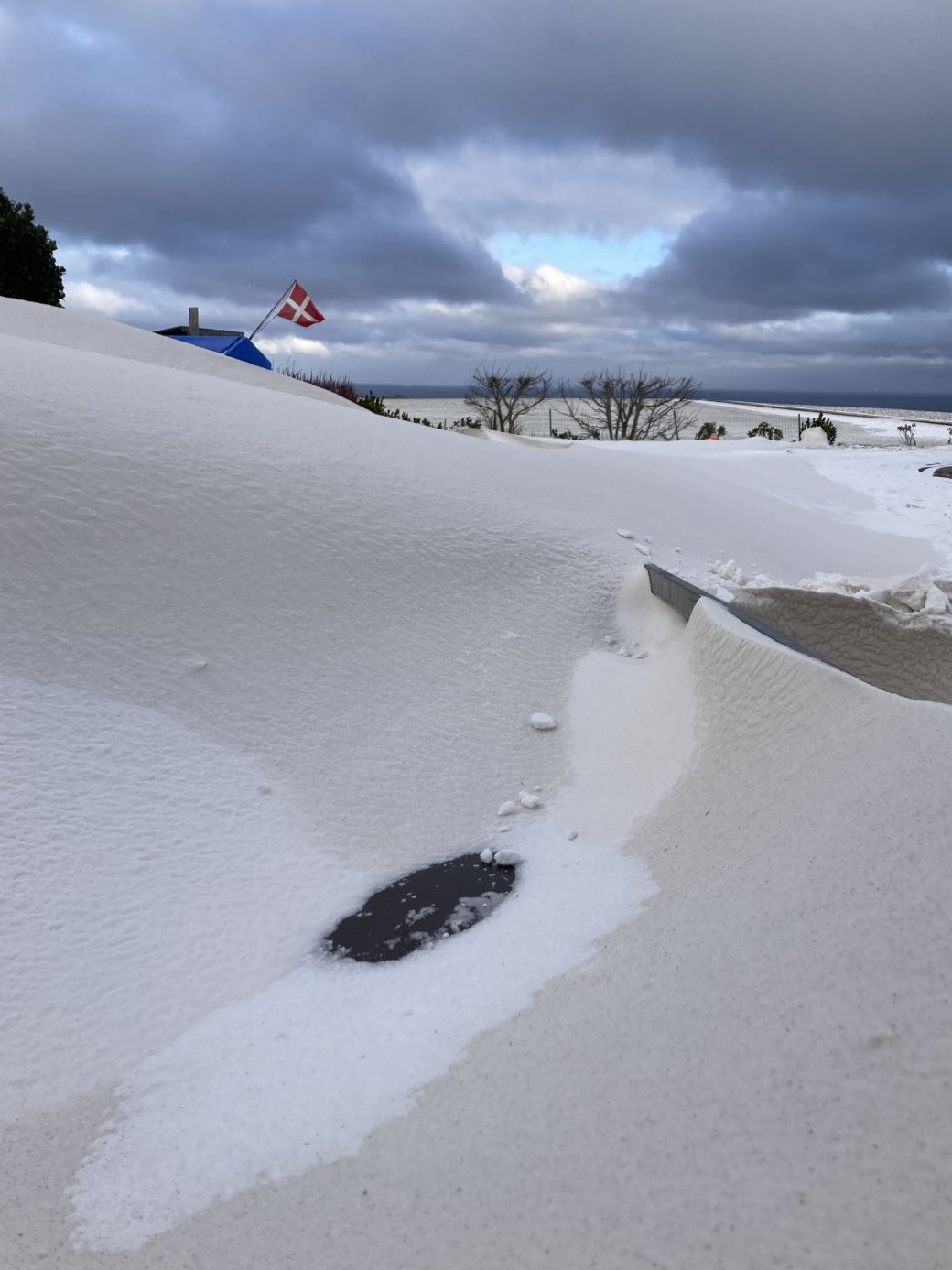 Så gik den ikke længere. Jeannie Viskindes billede melder ikke noget om, hvorvidt hun selv er kørt fast. Men bilen ser i hvert fald ud til at holde ufrivillig vinterferie.
