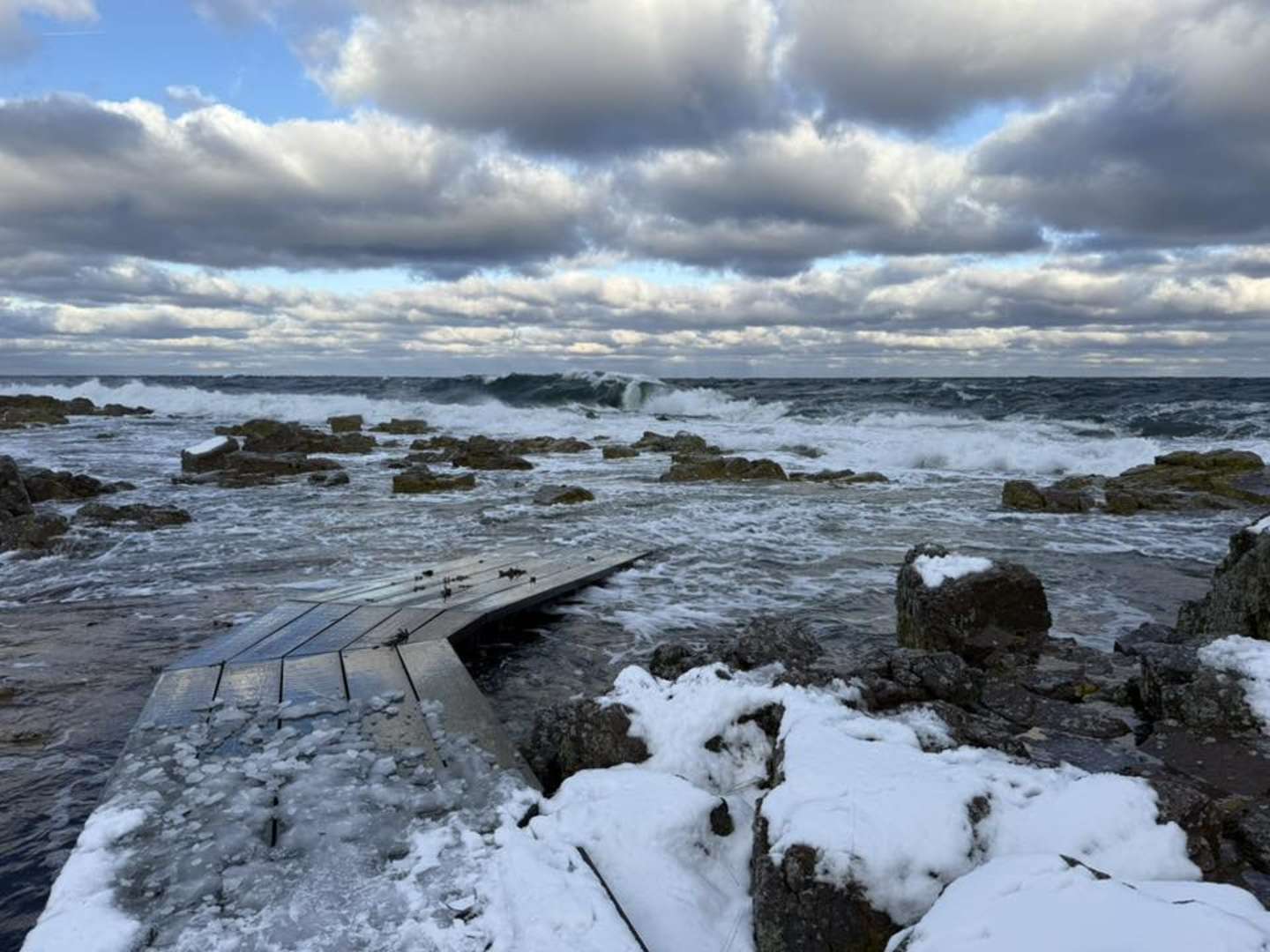 Hmm...lidt blæsevejr, og så bliver det en kold og våd fornøjelse at tage ophold på den bænk, som Birkelund Bornholm har sendt et billede af