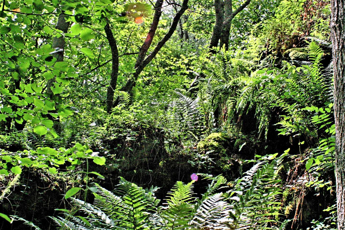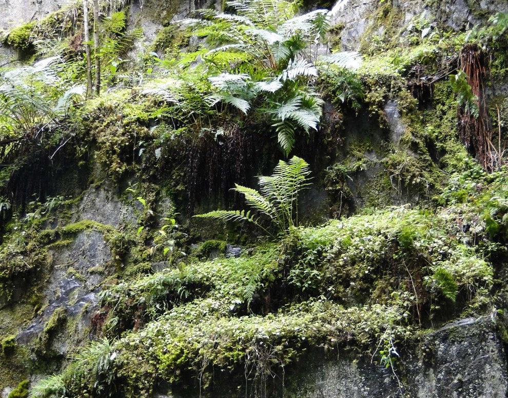 Senere bliver sprækkedalen smallere, klipperne er klædte med tykke puder af mos, og mellem dem vokser der mange forskellige bregner.