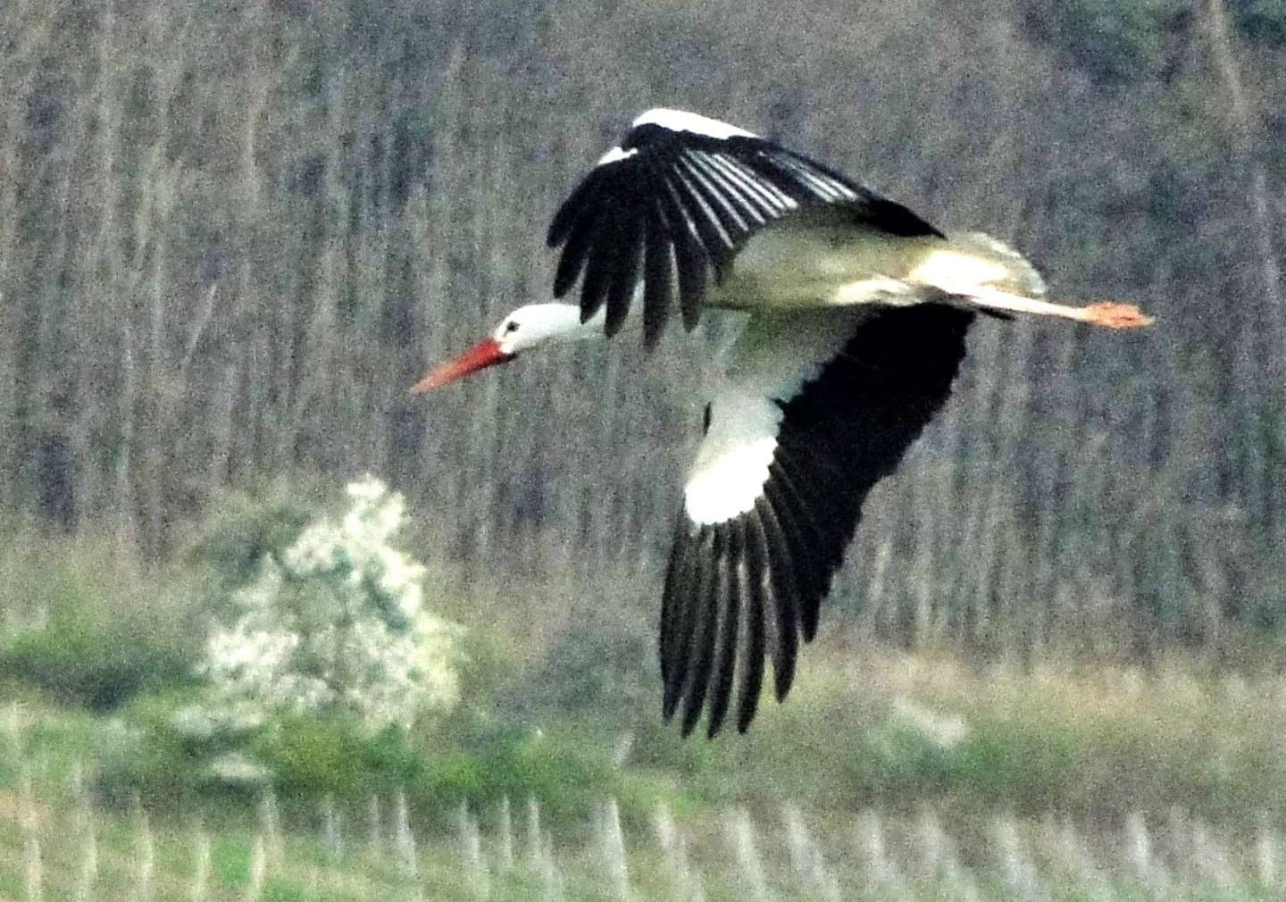 En flyvende hvid stork på træk