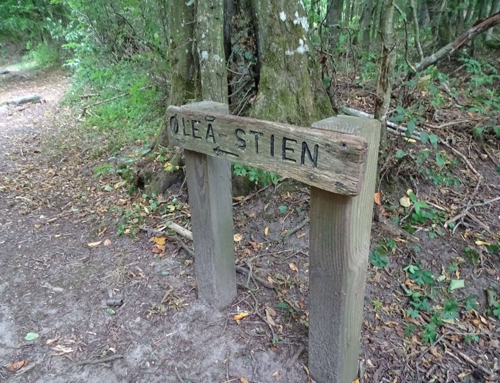 Øleåstiens begyndelse er markeret af et ældre skilt.