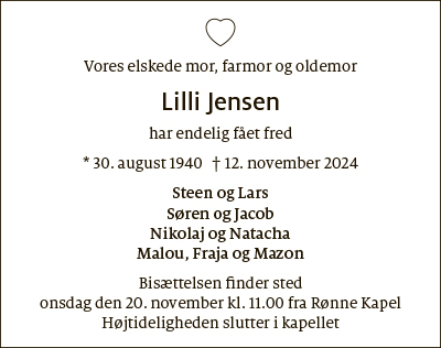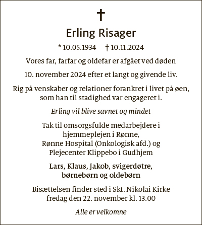 Dødsfald fra Bornholms Tidende den 16. november 2024