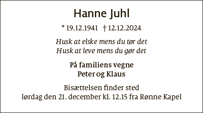 Dødsfald fra Bornholms Tidende den 18. december 2024