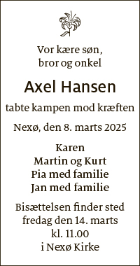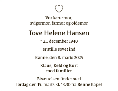 Dødsfald fra Bornholms Tidende den 11. marts 2025