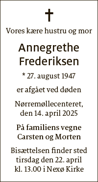 Dødsfald fra Bornholms Tidende den 16. april 2025
