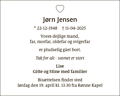Dødsfald fra Bornholms Tidende den 17. april 2025