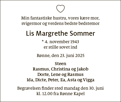 Dødsfald fra Bornholms Tidende den 26. juni 2025