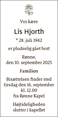 Dødsfald fra Bornholms Tidende den 13. september 2025