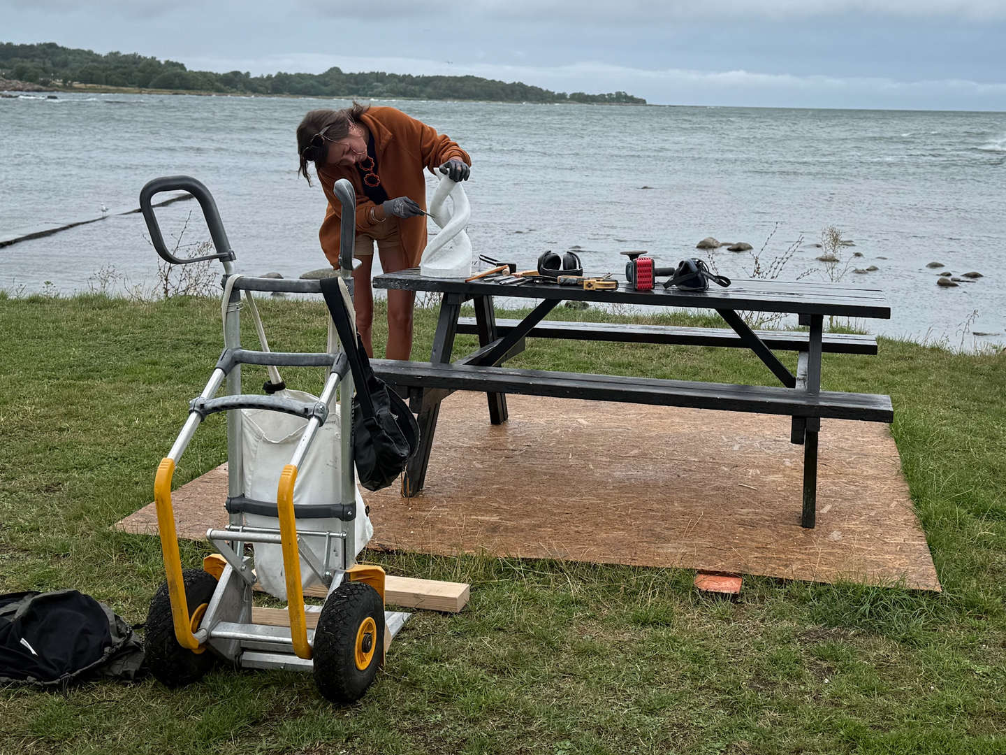 – Folk har været rigtig søde og hjælpsomme. For det er svært at komme et nyt sted hen og skaffe kontakter på kort tid, men folk har virkelig taget godt imod det. Der er en tømrer fra Nexø, der har bygget en plade til mig, så jeg har et underlag at stå på, jeg har lånt noget værktøj, og så får jeg gratis sten, hvilket er fantastisk, for det er normalt ret dyrt.