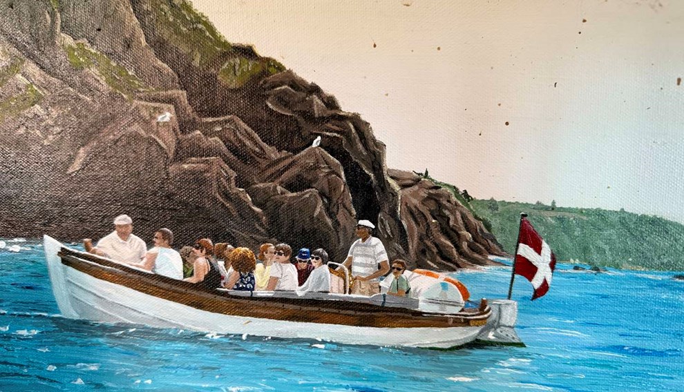 Ebbe Bay Mogensen har i 34 år sejlet med turbåde fra Hammerhavn, hvilket her er gengivet af et barnebarn. Foto: Holger Larsen