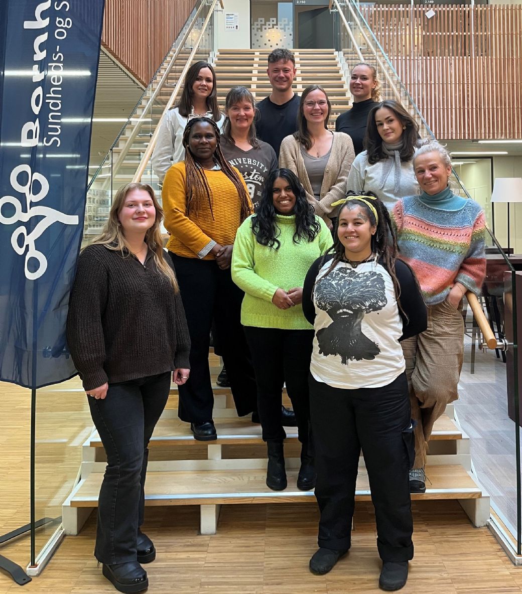 Underviser Ea sammen med de studerende, der har gennemført grundforløb 2: Christian, Noora, Dorthe, Jessica, Anine, Ruth, Cecilie, Vicki, Claudia og Adriana. Foto: Bornholms Sundheds- og Sygeplejeskole