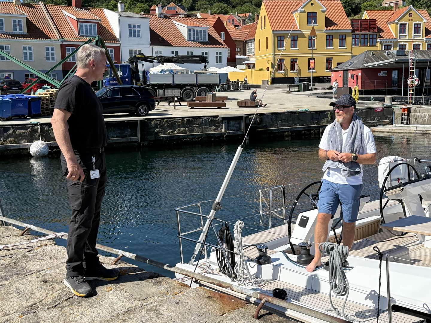 – Fra Martinique i Caribien skriver jeg så en ansøgning til stillingen som havnefoged, og jeg bliver indkaldt til samtale - men må selvfølgelig skrive tilbage, at jeg sidder i Martinique, hvorfra jeg er til samtale online på Teams. Det går rigtig fint, og vi aftaler, at jeg skal nå at være hjemme til den 15. april. Jeg når hjem den 12. april og starter som havnefoged den 15. april, hvor jeg har fået tildelt havnene i Gudhjem, Nørresand, Bølshavn og Svaneke. Det er jeg superlykkelig over. Det er et drømmejob at komme hjem til, så det er jeg glad for.