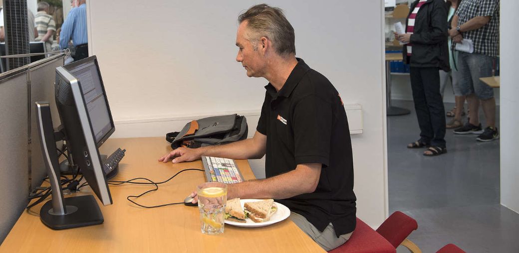 Torben André Poulsen har selv klippet sine indslag de seneste 10 år. Men ellers er skrivebordsarbejde ikke noget, han bryder sig om. Her ses han til åbent hus hos TV2 Bornholm i 2015. Arkivfoto: Allan Rieck