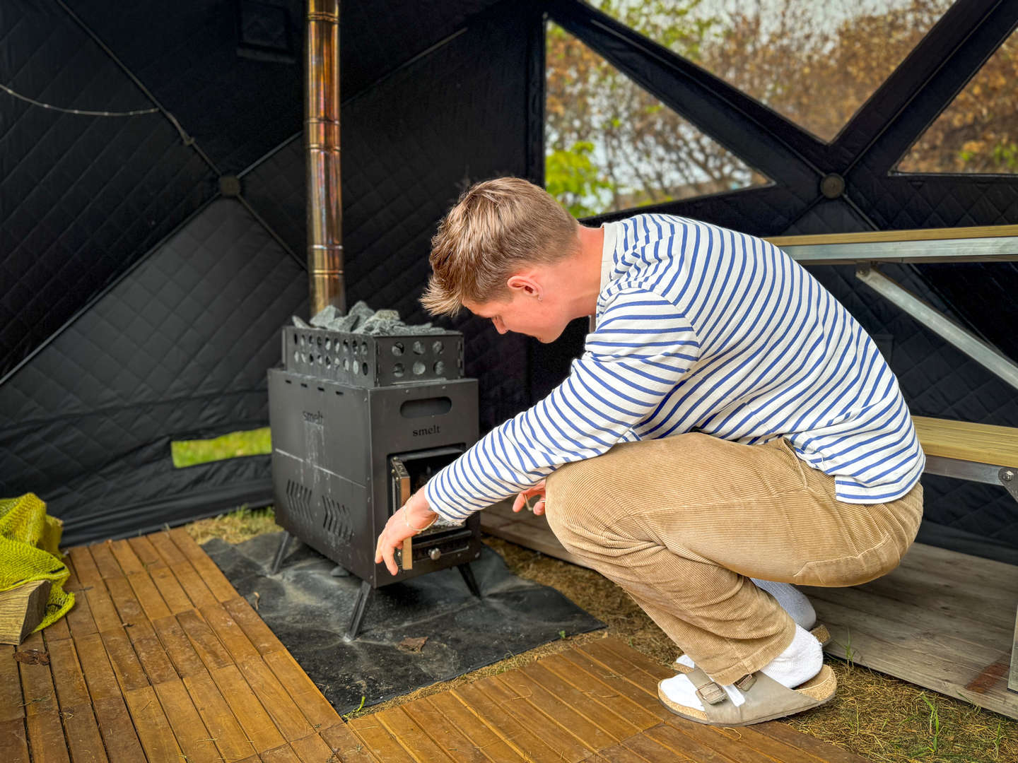 – Mit daglige virke er at lave webshops, og jeg har egentlig altid gerne villet lave min egen webshop. Men jeg har heller ikke bare villet lave noget for bare at tjene penge på det. Jeg ville gerne finde noget, der gav mening for mig, fordi så kunne man krydse nogle hobbyer med mit virke. Og her synes jeg bare, at det gav god mening, fordi jeg selv har fået kæmpestor værdi ud af at bruge saunaen. Så for mig har det været en stor del af missionen også at kunne videregive den glæde til andre mennesker. Teltene er inden for et prisniveau, som de fleste kan være med på, og de er også transportable, så man kan forholdsvis nemt tage dem med til vennerne eller tage dem med i sommerhuset, eller hvad man lige har lyst til.