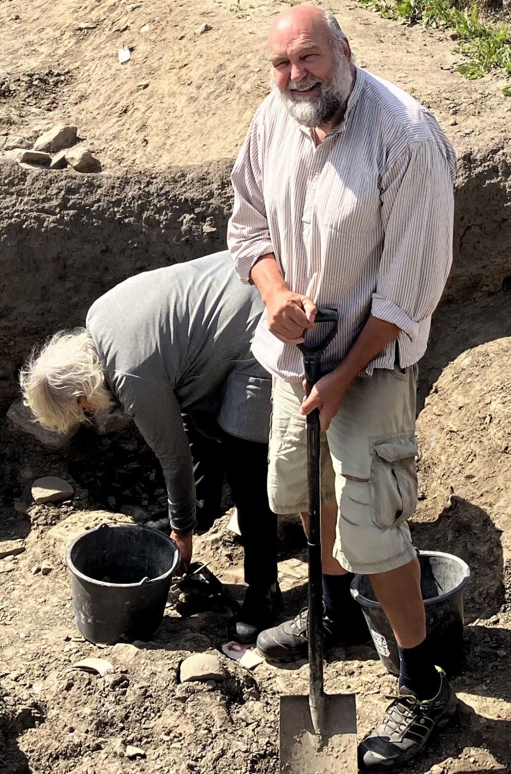 Den forhenværende chefarkæolog er ikke bange for at deltage i det tunge arbejde. Foto: Anette Vestergaard