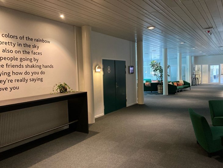 Mødelokale 8 på Green Solution House, hvor Enhedslisten, Venstre og Socialdemokratiet forhandlede i godt seks en halv time. Foto: Jesper Dollerup Merved
