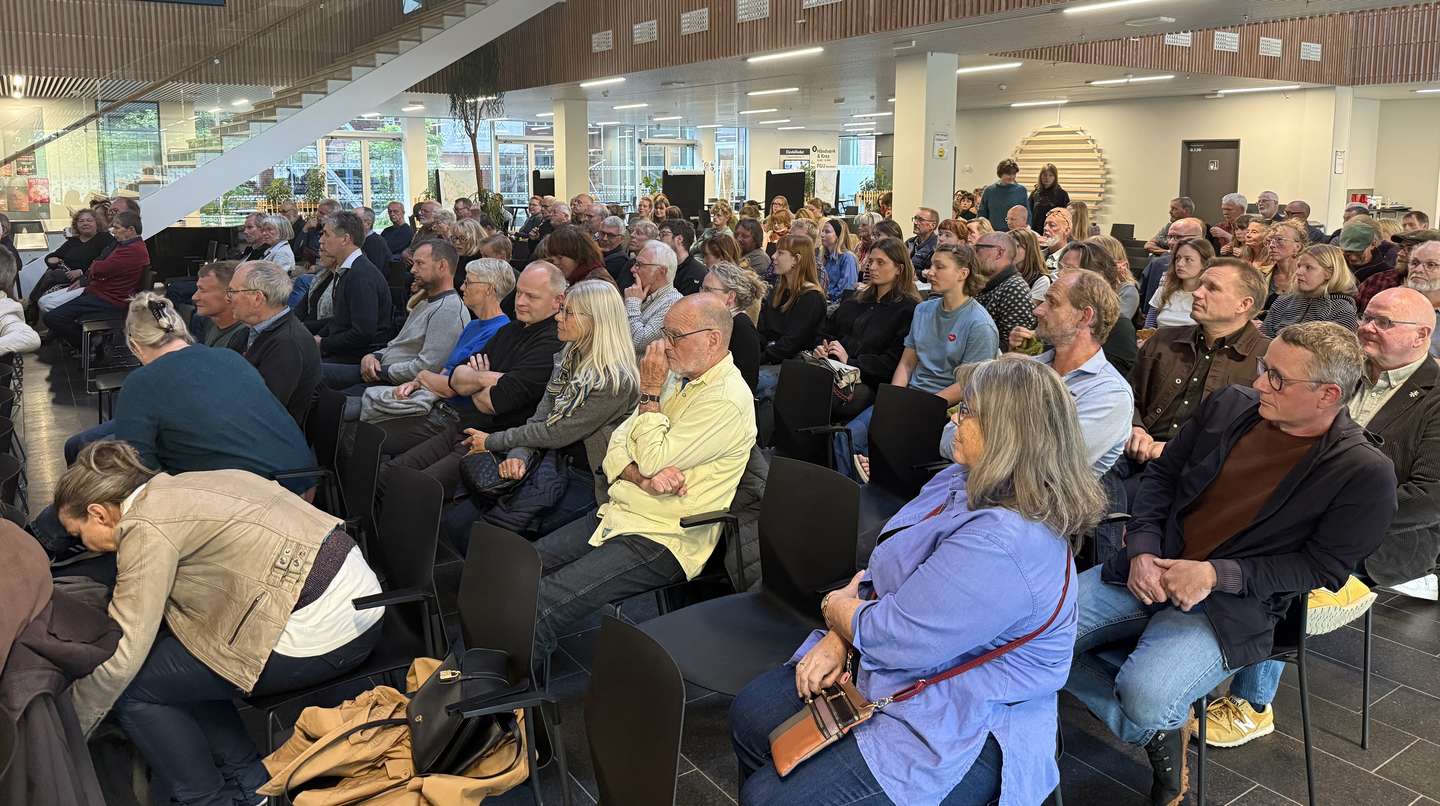 Borgermødet blev afholdt på Campus Bornholm, hvor både landmænd, lodsejere og andre interesserede mødte op for at høre om arbejdet. Foto: Frida Flinch.