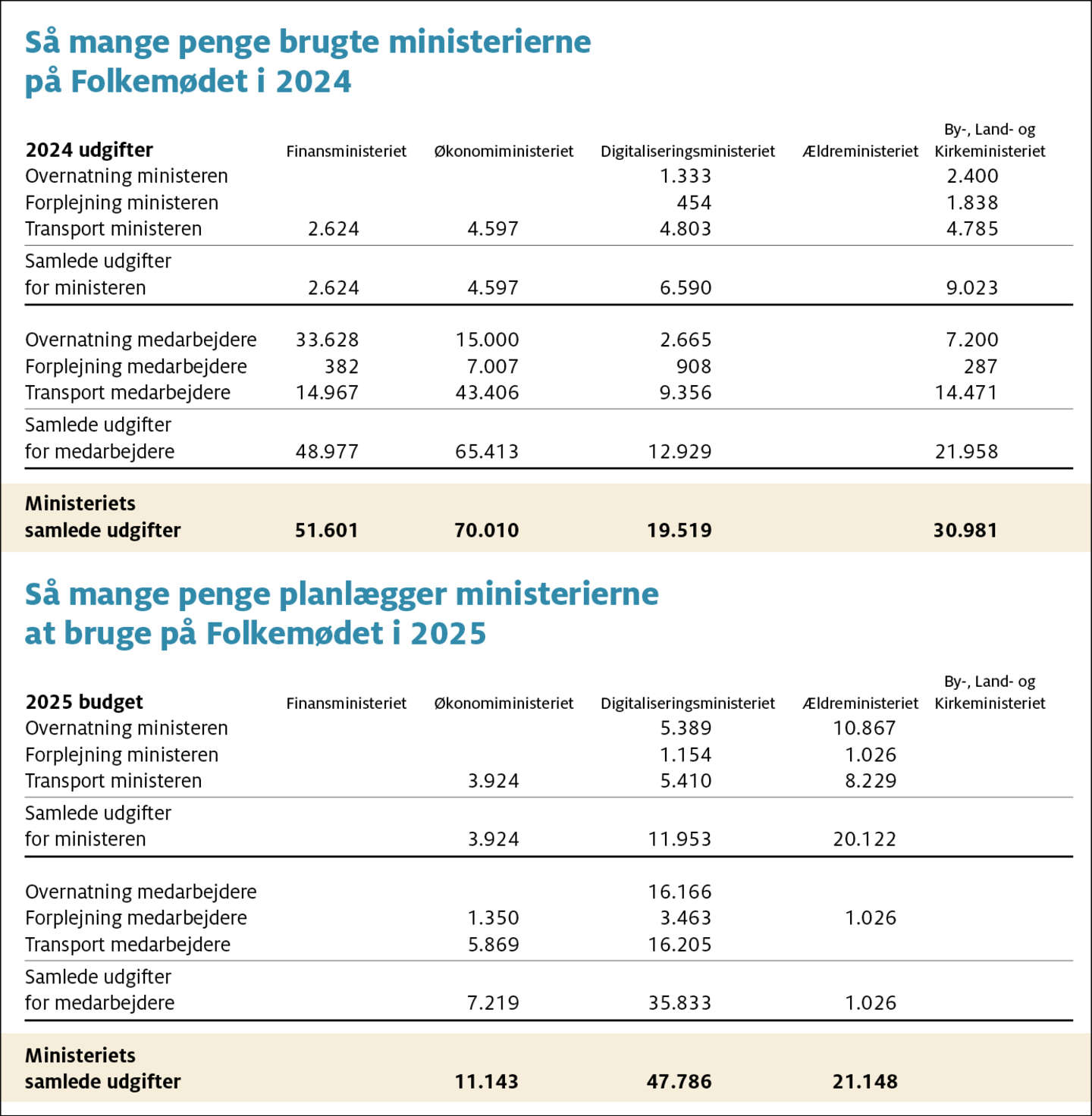 Det skal i øvrigt tilføjes, at en del af Digitaliseringsministeriet transportudgifter går til leje af cykler. Ministeren og medarbejderne skal nemlig bo et stykke væk fra Allinge og har ifølge deres budget derfor brugt 2.060 kroner til cykelleje inklusive hjelm og lys. Hvilket er billigere end taxaer.