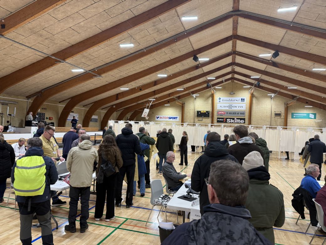 Bornholmerne er strømmet til valgstederne i dag. Her er det fra Rønne Idrætshal, hvor der hen ad eftermiddagen begyndte at danne sig kø. Foto: Frida Flinch