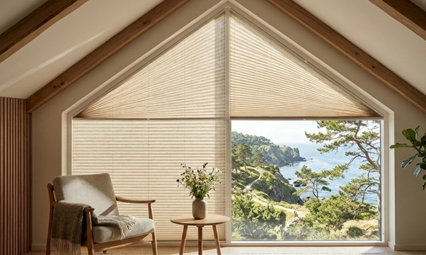 Lydbølgerne kastes ukontrolleret rundt mellem de hårde flader, hvilket kan resultere i en rungende rumklang, der gør det anstrengende at føre en samtale, når familien er samlet, eller når man har gæster på besøg. Her spiller gardiner en afgørende, funktionel rolle. Selvom et gardin er skræddersyet til at passe ind i en skæv vinkel i toppen af gavlen, udgør selve stoffet en blød overflade, der absorberer lydbølgerne. Tekstiler i vinduerne er ganske enkelt med til at skabe en markant bedre akustik, så rummet ikke kun ser rart ud, men også føles rart at opholde sig i.