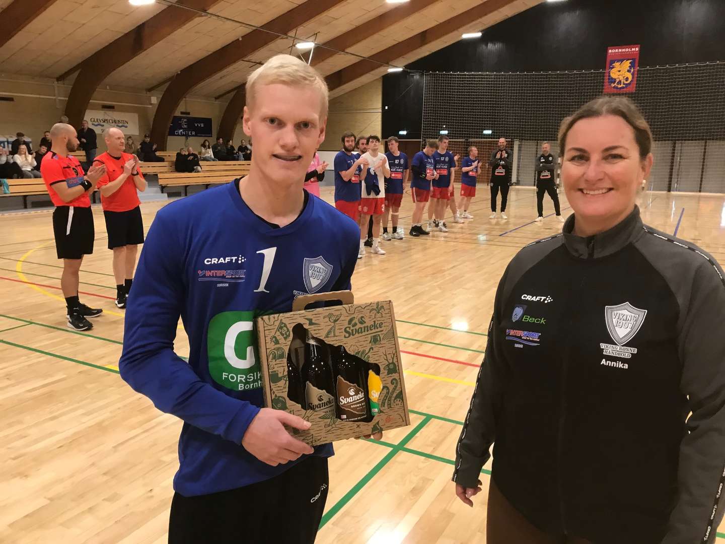 Målvogter Mads Mogensen gjorde det godt i det bornholmske mål og blev af Annika Espersen kåret som dagens bedste Viking/Rønne-spiller. Foto: Kjeld Lundbæk