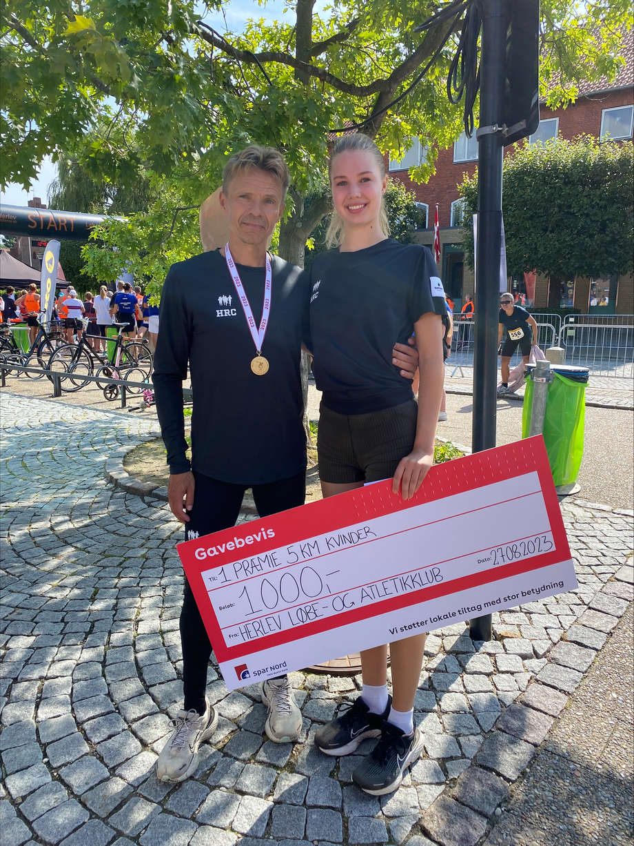 Klara vandt i overlegen stil sit 5 km gadeløb og blev efterfølgende hædret med blomster og en flot pengepræmie af Herlev løbe- og atletikklub.