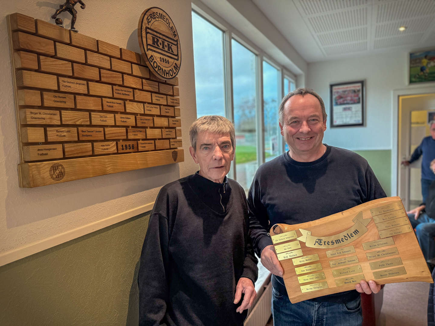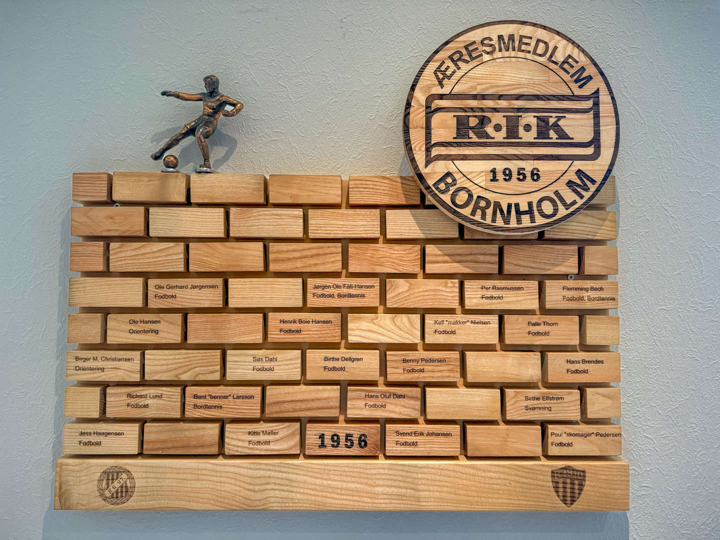 – Det har taget noget tid at få lavet den færdig, for det er ikke bare noget, man banker op på en eftermiddag. En ærestavle skal nemlig vise respekt til dem, der har ydet en stor indsats for klubben. Det er alle sammen gode idrætsfolk, som har sat retningen for RIK og defineret klubben, og det er vigtigt at fortælle historien og ære dem på en ordentlig måde, siger Flemming Bech, som har fået hjælp af to håndværkere til at lasergravere navnene på klodserne. Derudover er der også RIK's og de to moderklubbers logoer (RB 1897 og B1910) og en lille statue af den tidligere spiller Aksel Nielsen.