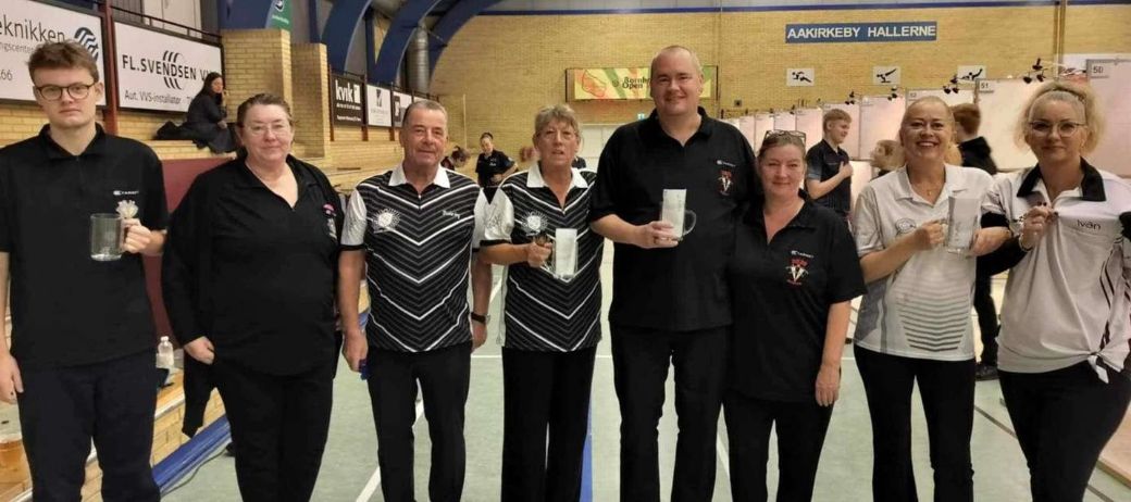 Brian Løkken (nr. tre fra venstre, red.) sammen med sin kone, Wanja, som også spiller dart. De blev nummer to i mixed double ved Bornholm Open Dart sidste år. Privat foto