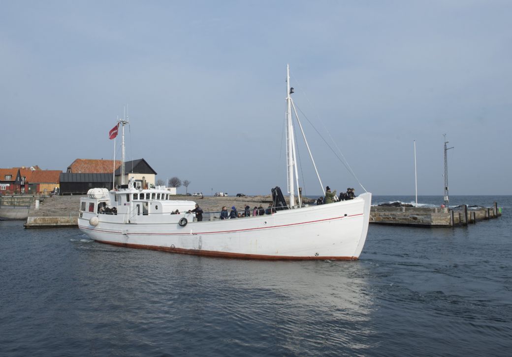 Postbåden plejer at sejle mod Ertholmene klokken 10, men klokken 10.50 ligger den stadig i havnen i Gudhjem.