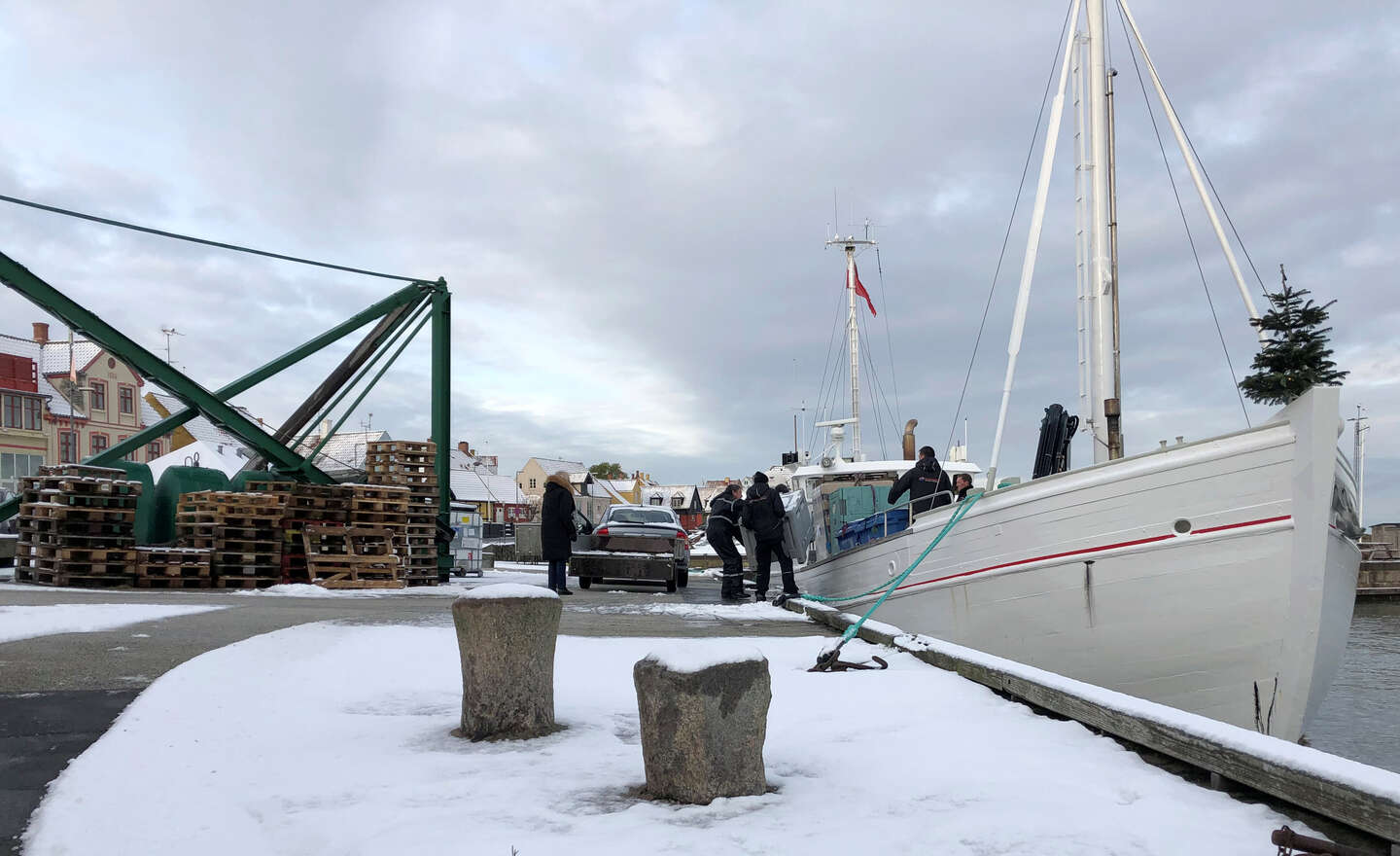 Postbåden Peter iklædt sne i Gudhjem Havn i 2021. Lørdag sejler den fra Tejn til Christiansø og retur. Arkivfoto: Torben Østergaard Møller