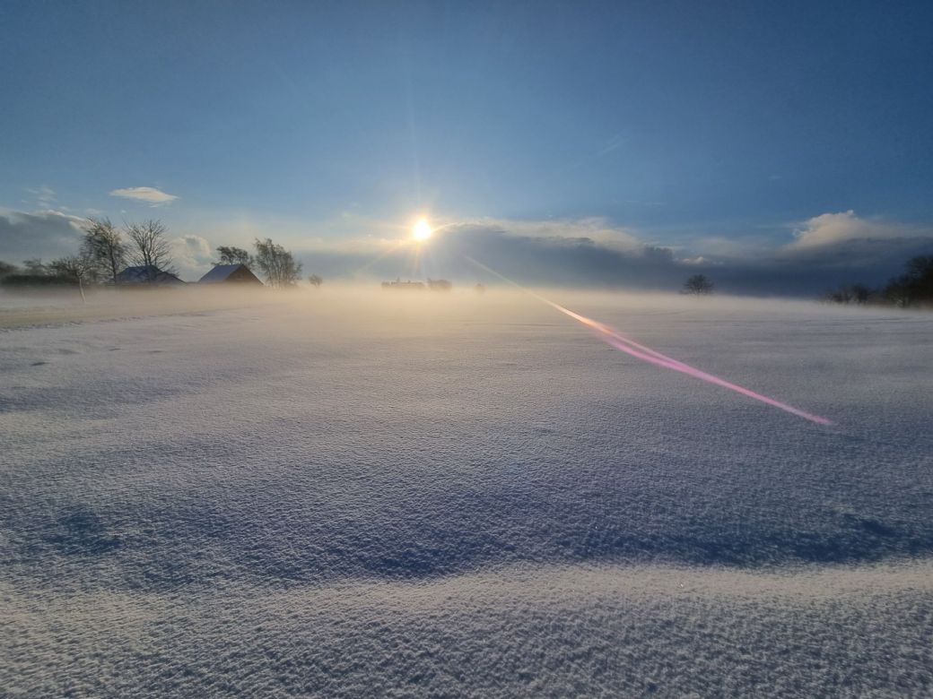 Et smukt fygende vinterlandskab fra Camilla Jørgensen i Pedersker. Foto: Camilla Jørgensen.
