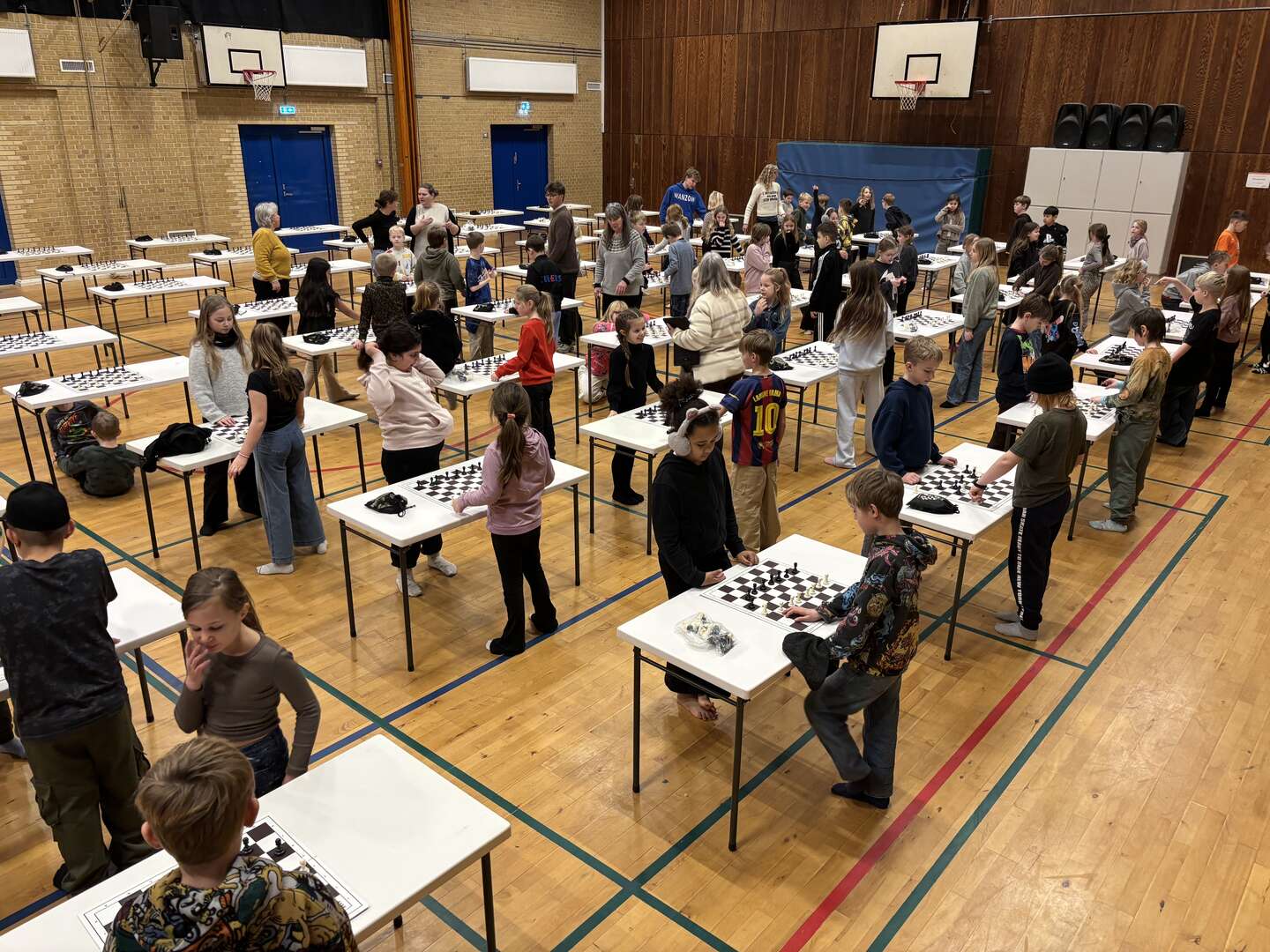 Herefter gik eleverne til det ternede bræt, hvor der var forskellige småspil at dyste i - blandt andet action-bondeskak med otte sorte og hvide bønder.